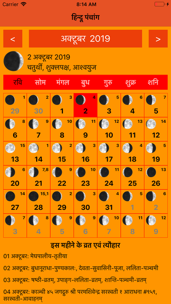 ヒンドゥー・パンチャン - カレンダーはiOS 16.4以上で利用できます。現在のアプリのバージョンは3.2.0で、英語のみで実行できます。
